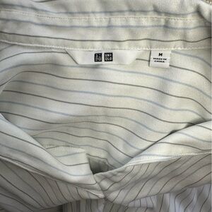 Chic Uniqlo shirt with blue stripes. Versatile and stylish.