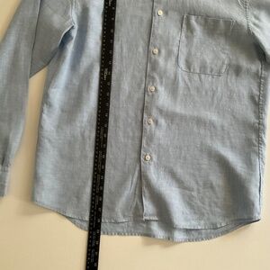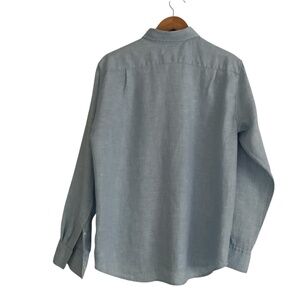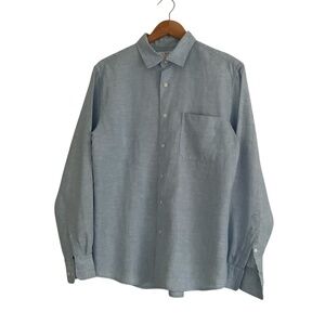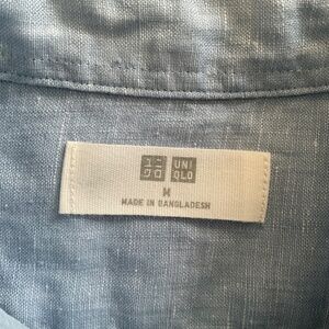 Uniqlo Women’s 100% Linen Button Up Shirt Sz M Blue Pocket Minimalist Preppy