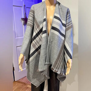 Uniqlo Womens 2 Way Knit Blanket Poncho Windowpane Plaid OS NWT