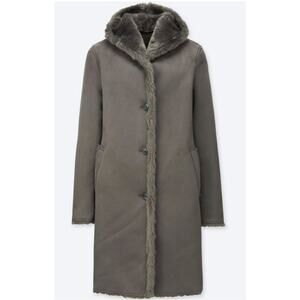 Uniqlo Women's Faux Shearling Hooded Faux Suede Coat in Grey