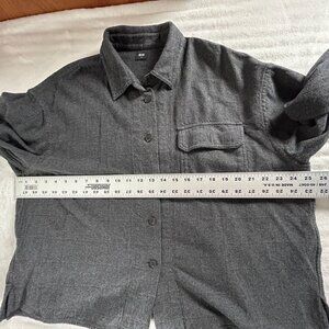 Uniqlo Womens Gray Check Button-Up Shirt Jacket Medium Long Sleeve Pocket Casual