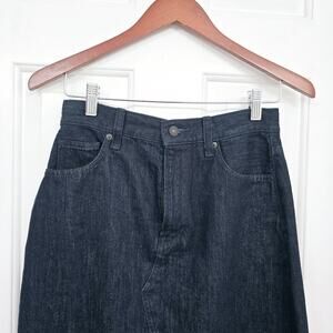 Uniqlo Women's Jean Skirt Dark Wash 100% Cotton High Rise Long Straight Cut 28"