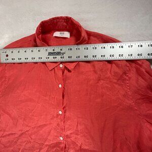 Uniqlo Womens Red 100% Linen Button-Up Long-Sleeve Shirt XXL Lightweight Casual