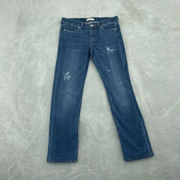Uniqlo Womens Slim Tapered Jeans 27" Waist 33" Inseam Distressed Blue Denim 3660