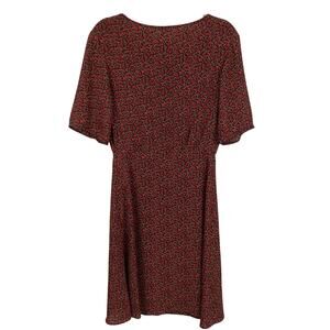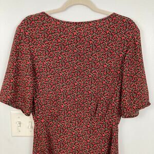 -flowy black short sleeve midi dress with red allover tiny ditsy floral print