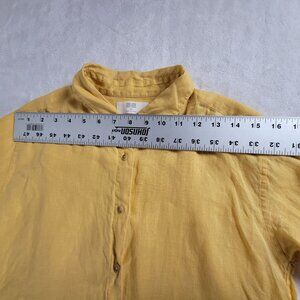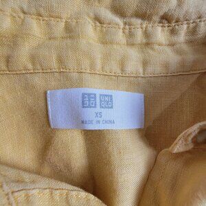 Uniqlo Womens Yellow Button-Up Long Sleeve Linen Shirt Small Casual Lightweight