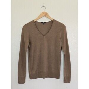 Uniqlo Wool V Neck Sweater Womens Size Small Brown Pullover Lightweight
