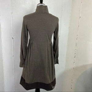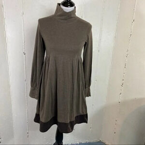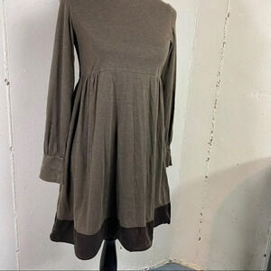 Uniqlo XS brown long sleeve velvet trim dress