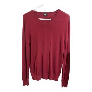 Uniqlo mens V-neck long sleeve pure new wool sweater. Maroone color Red. Size medium.