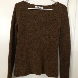 Adorable large Uniqlo sweater. Mustard with black - brown / tanning. fits like a small!