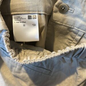 Uniqlo tan linen/cotton blend back elastic waistband 4 pocket wide leg pants S