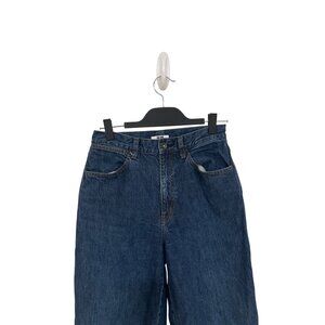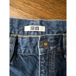 Wide leg, baggy jeans from Uniqlo in size 27. Waist measures approximately 14 inches across, rise measures 11.5 inches, inseam measures 28.5 inches. These have been professionally shortened/hemmed. Wide leg baggy style. These are in very good gently used condition with no holes or stains.
