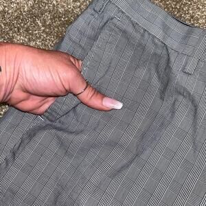 gray plaid dress pants, women’s tailored trousers, mid-rise work pants, straight leg slacks, business casual pants, formal plaid trousers, office wear bottoms, checkered dress pants, structured fit pants, classic workwear style