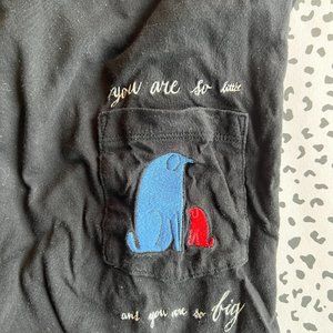 🎨 Wearable Art! This Uniqlo x Andy Warhol collaboration t-shirt is a must-have for art lovers and collectors alike. Featuring an embroidered design of two dogs—one blue, one red—with the whimsical phrase, “You are so little and you are so big,” this cropped pocket tee blends casual style with artistic flair.