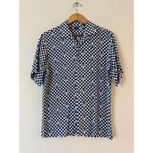 Uniqlo x Disney Mickey Mouse Open Collar Short Sleeve Camp Shirt XS Blue Checked