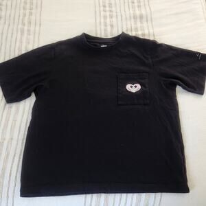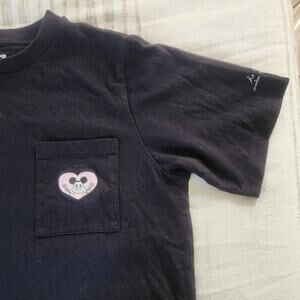 Soft black shirt with front pocket on chest with pink heart and Mickey in the center.
