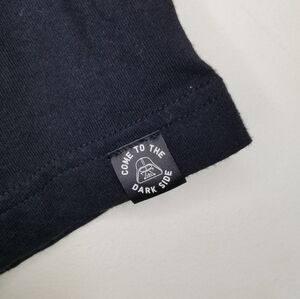 Black tee with 'Come to the Dark Side' graphic. Soft and comfortable fabric.