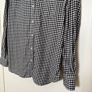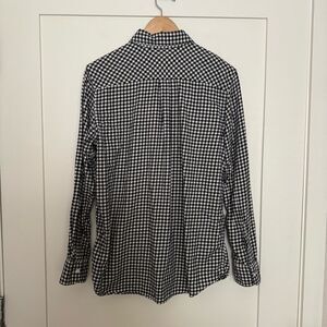 Uniqlo Flannel Shirt Womens Sz L White Black Checkered Button Up Long Sleeve