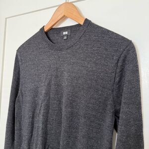 Uniqlo Sweater Men Sz S Dark Gray Knit 100% Wool Crewneck Pullover Office Preppy