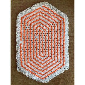 Unique 1970s Handmade Crochet Daisy Floral Pattern White and Orange Place Mats