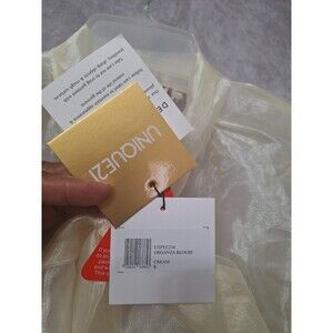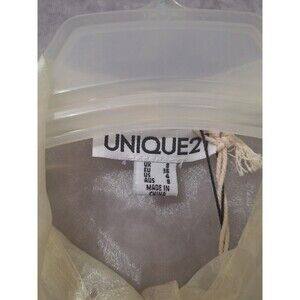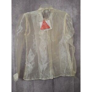This Unique 21 Pussybow Sheer Organza Blouse in size 4 is a stylish and elegant addition to any woman's wardrobe. The long sleeves and collared neckline add a touch of sophistication, while the ivory color and button-up style give it a classic and timeless look. Made of lightweight and breathable polyester, this blouse is perfect for everyday wear or special occasions, and its sheer material adds a touch of femininity. Ideal for those who appreciate a mix of romance and chic style, this blouse is sure to become a versatile and favorite piece in your closet. PTP 17.5 in. Length 24.5 in. Sleeves 24 in.