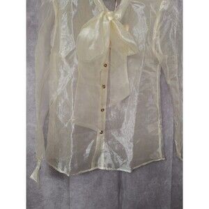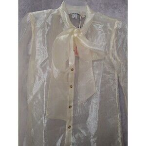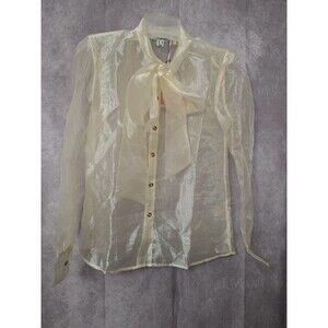 Unique 21 Pussybow Sheer Organza Blouse Sz 4 Button Up Long Sleeve Coquette