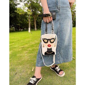 Unique 3D Lady Face PU Leather Satchel Funky Hobo & Crossbody Bags for Women's