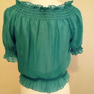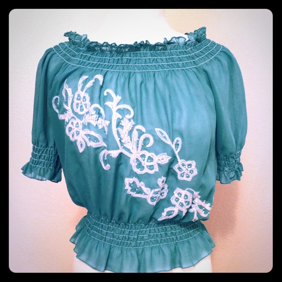 Unique top , Turquoise with white bead appliqué , 💯% polyester , chest 21", length 21".!!😍