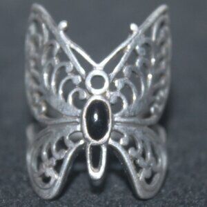 Unique 925 Sterling Butterfly & Genuine Onyx Boho Gypsy Statement Ring