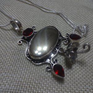 Unique "APACHE PYRITE & RUBY" UMBRELLA Handmade Sterling Pendant/Chain #48B