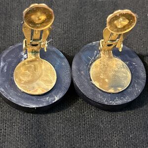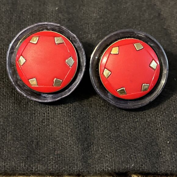 Unique Acrylic Button Clip On Earrings Black Red With Metal Stud Accents