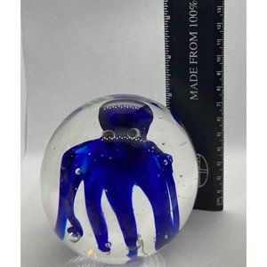 Unique Adorable Blue Octopus Paperweight. Good condition. There are some scratches on top and a couple tiny pin hole sized chips (see last couple pictures). See pictures for more details and size.