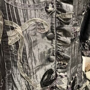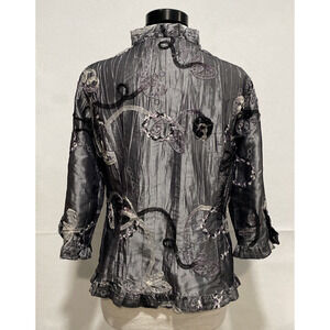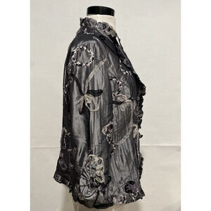 Unique Agora Crinkle Ribbon Detailed Artsy Graphite Evening Jacket Women's Large