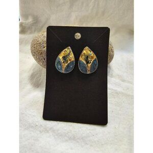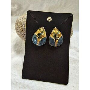 Unique Artistic Post Earrings Statement Jewelry Gold Tone MCM Blue Swirl Mosaic