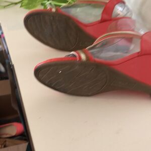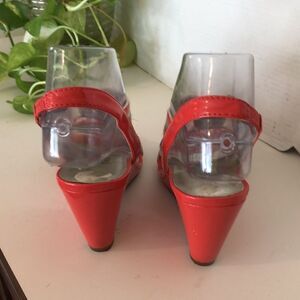 Unique Artsy AK Anne Klein Y2K Orange and Gold Wedge I flex Sandals size 6.5