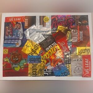 This beautiful unique one of a kind piece is perfect for any Ganja Buddha enthusiast. The ganja plant multiple wraps are is carefully collaged within an intricate frame to create a stunning wall hanging.