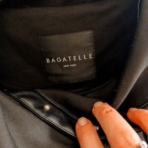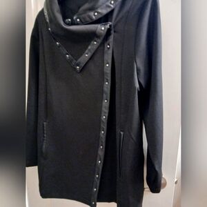 NWOT black Bagatelle coat with leather trimmed silver studs