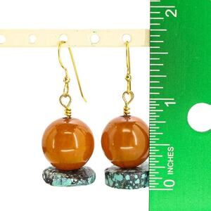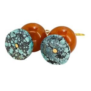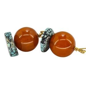 Unique Bakelite & Natural Spiderweb Turquois Drop Dangle Beaded Boho Earrings