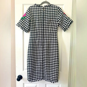 Unique Beautiful Dress, Houndstooth pattern, Embroidery and Rhinestones size S