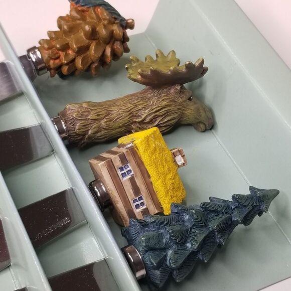 Unique Bella Cermica Cheese Spread Knives 4Pc Set Pinecone Moose Log Cabin Pine Tree