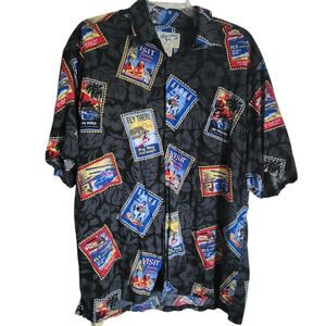 Unique Big Dogs Mens Shirt Size XL Hawaiian Postage Stamps Theme Boho Y2K