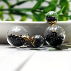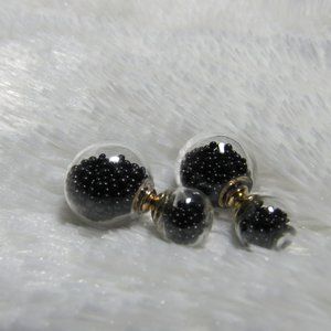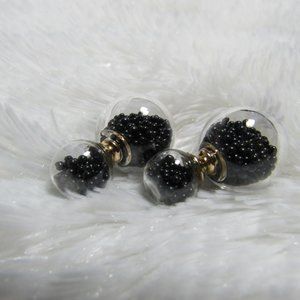 Unique Black Beaded Double Sided Front Back Pearl Beaded Earrings