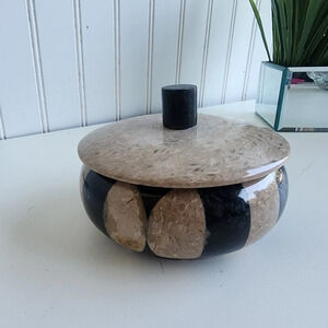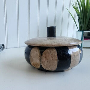 Unique Black & Brown Stone Checker Bowl Lid In Marble & Onyx 4.5”