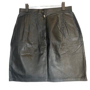 Unique Black Genuine Leather Pencil Straight Flirty Skirt Women Sz 14 VTG