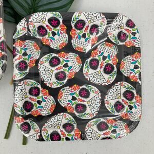 Unique Heavy Duty Black White Sugar Skull Day Of The Dead Halloween Party Paper Square Desert Plates Set