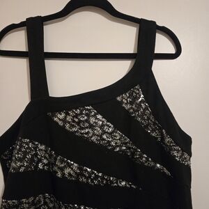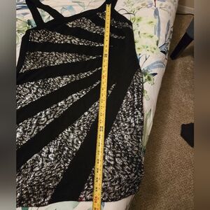 Shine in this elegant black and silver dress, perfect for any special occasion. The stunning design adds a touch of glamour to your wardrobe. Super stretchy and flattering.