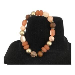 Unique Blend Soft Pink Earthy Brown Tan Beads Expandable Two Bracelet Bundle