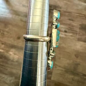Unique Blue Copper Turquoise Multi Stone Ring Southwestern Silver Adjustable