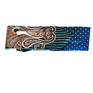 Unique statement piece Glam up a pair of jeans or define a waist this gives a touch of glam to any outfit. Unique one of a kind upcycled from two neckties one with a peacock / striped print and one with a subtle polka dot