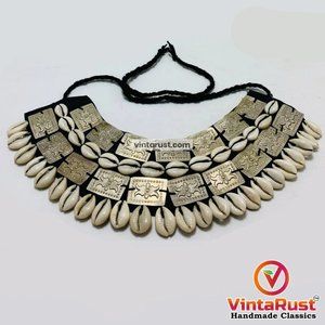 Dangling shells are embellished at the bottom of this alluring pendant. The simple yet elegant tribal necklace is perfect for a casual occasion. Intriguing work is done on the pendant which shows extraordinary skills of our craftsmen.